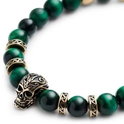 Rico | Green Tiger’s Eye & Gold-Tone Stainless Steel Skull Bracelet