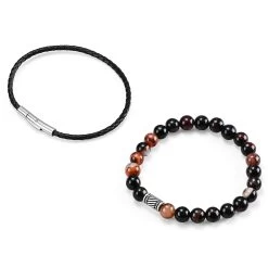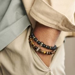 Elysian | Gold-Tone Onyx And Tiger’s Eye Flat Bead Bracelet