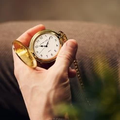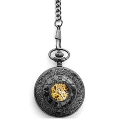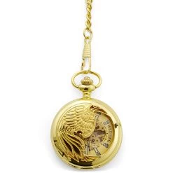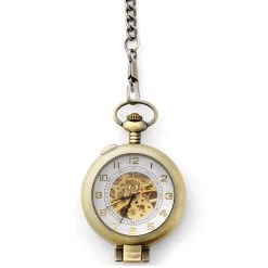 Gold-Tone Retro Mechanical Pocket Watch With Gold-Tone Movement & Gold-Tone Cable Chain