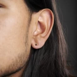 You can’t beat a classic gold stud. With a small black cubic zirconia stone mounted in the middle, this one will bring just the right amount of bling to your look.