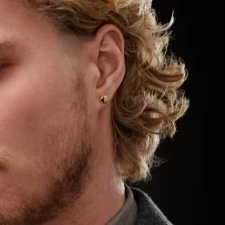 Made from rust-resistant stainless steel with a bright, gold-toned finish. This men’s stud is only missing one thing… your earlobe.