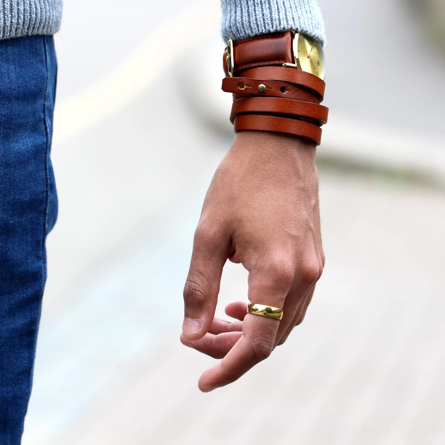 A classic, iconic, gold-toned titanium ring for men. Wear it as a casual addition to any ensemble, or even as your wedding ring!