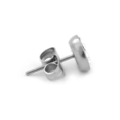 This round polished steel stud is encrusted with crystal clear cubic zirconia bling.