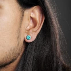 No need to pierce your ear when you can wear a magnetic earring instead. This steel selection is encrusted with a bevy of blue crystals for added interest. Price shown is for one earring.