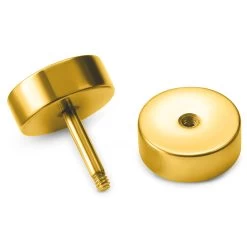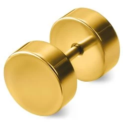 This cool gold-toned earring is made to look like a fake plug, fitting easily into a standard piercing size. Locks on securely with a simple screw mechanism.