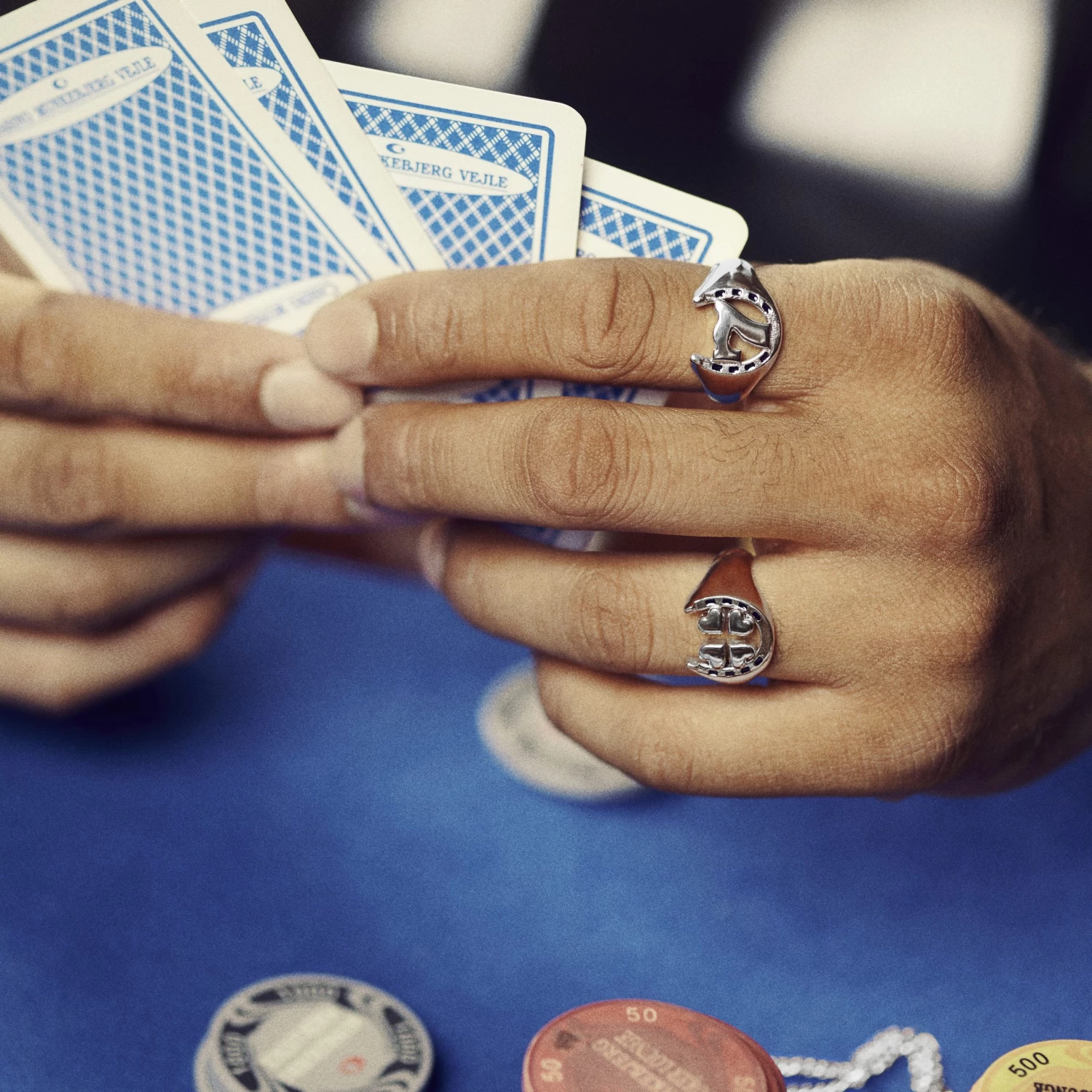 “Come on, lucky seven,” you might say at the craps table as you have an attractive bystander blow on your dice. This men’s signet ring combines two symbols of luck into one handsome accessory.