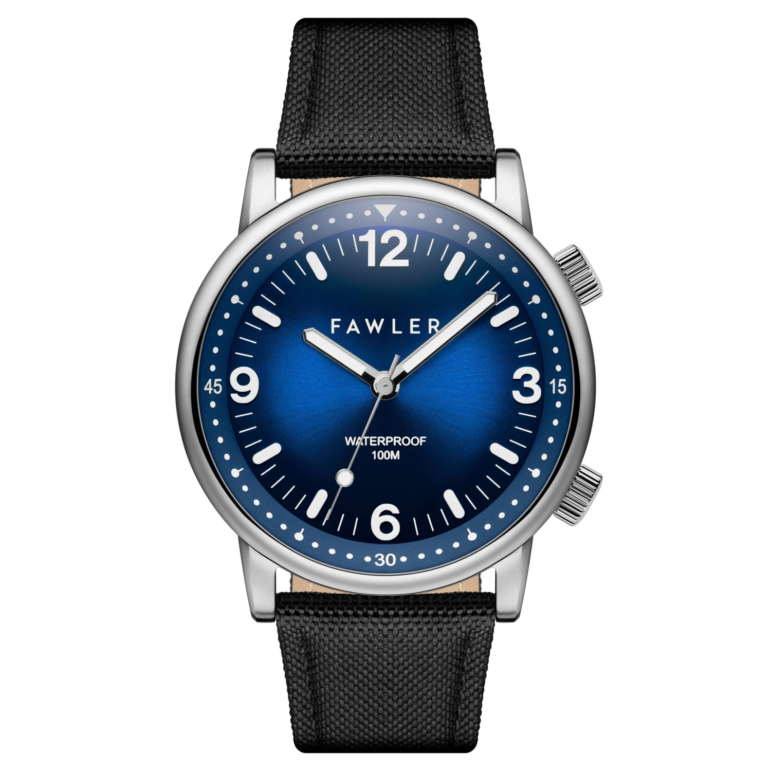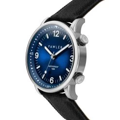 Its gorgeous gradient blue sunburst dial is encased in a surgical-grade stainless steel case and covered by double-domed crystal.