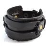 This bracelet’s crafted from black genuine leather and stainless steel.