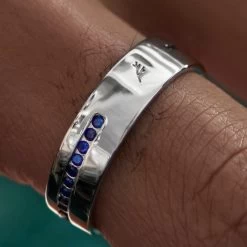 This polished sterling silver men’s ring adds that ice-cold touch to your outfit. Lined with blue cubic zirconia stones and rhodium plated for scratch and tarnish resistance.