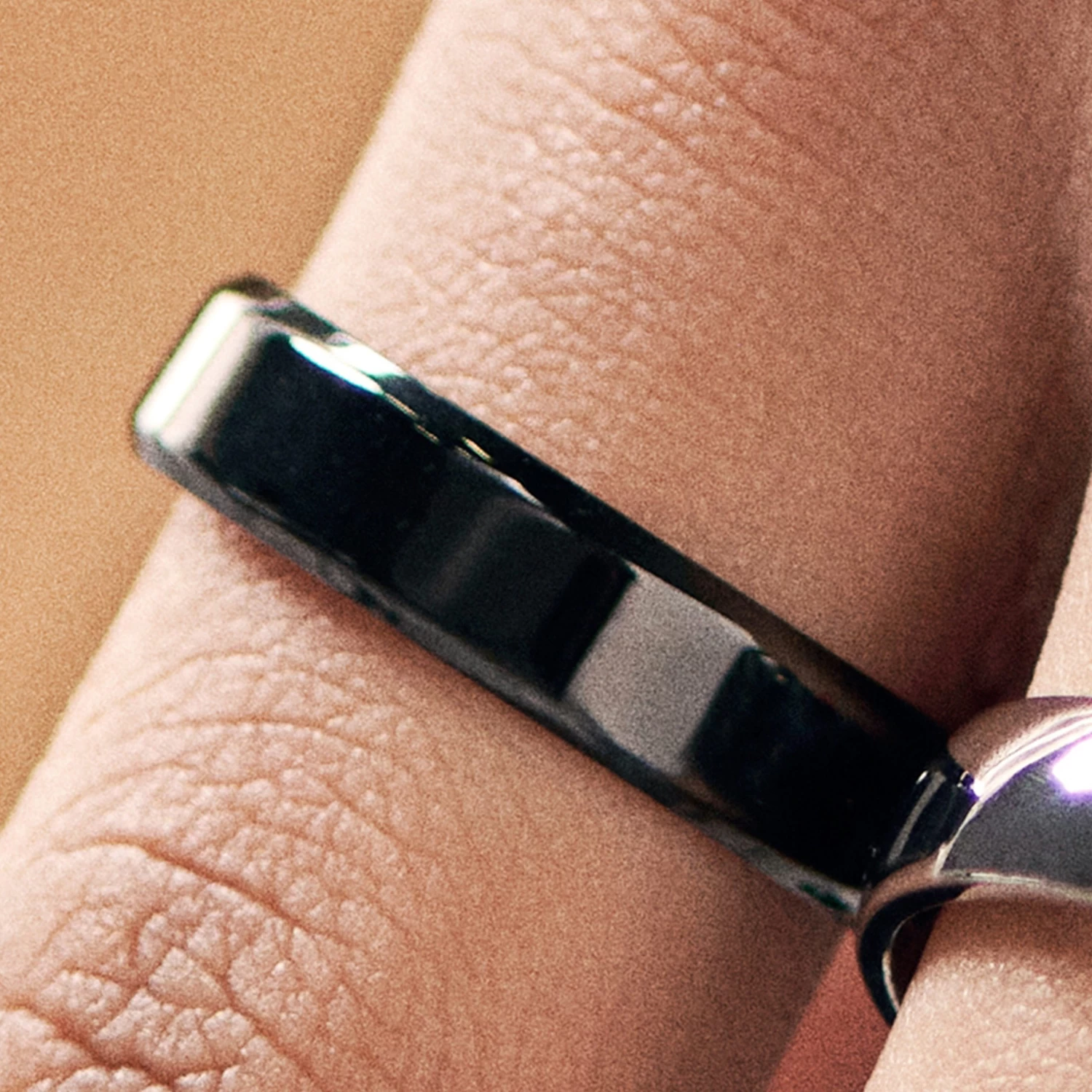 The black color of the Aesop Kash is accomplished using physical vapor deposition. PVD involves superheating titanium nitrate to a plasma state and shooting it at the ring’s surface inside a vacuum chamber. Sounds cool, right? This method forms a thin ceramic layer that’s bound to the surface at the molecular level. Ultra durable, it won’t flake, is scratch resistant, and much better for the environment than other forms of coating or plating.