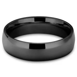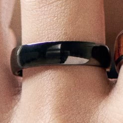 The black color of this ring is accomplished with physical vapor deposition. PVD involves superheating titanium nitride to a plasma state and shooting it at the surface. This creates an ultra-thin layer of ceramic that’s bound to the surface at the molecular level. PVD coating is scratch resistant, ultra durable, will not flake, and is better for the environment.