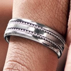 Titanium is named after the Titans of Greek myth, and before you start thinking this ring must be as heavy as those lumbering giants of old, titanium is actually about half the weight of steel. It’s corrosion resistant, lightweight, and tough as… well, titanium.
