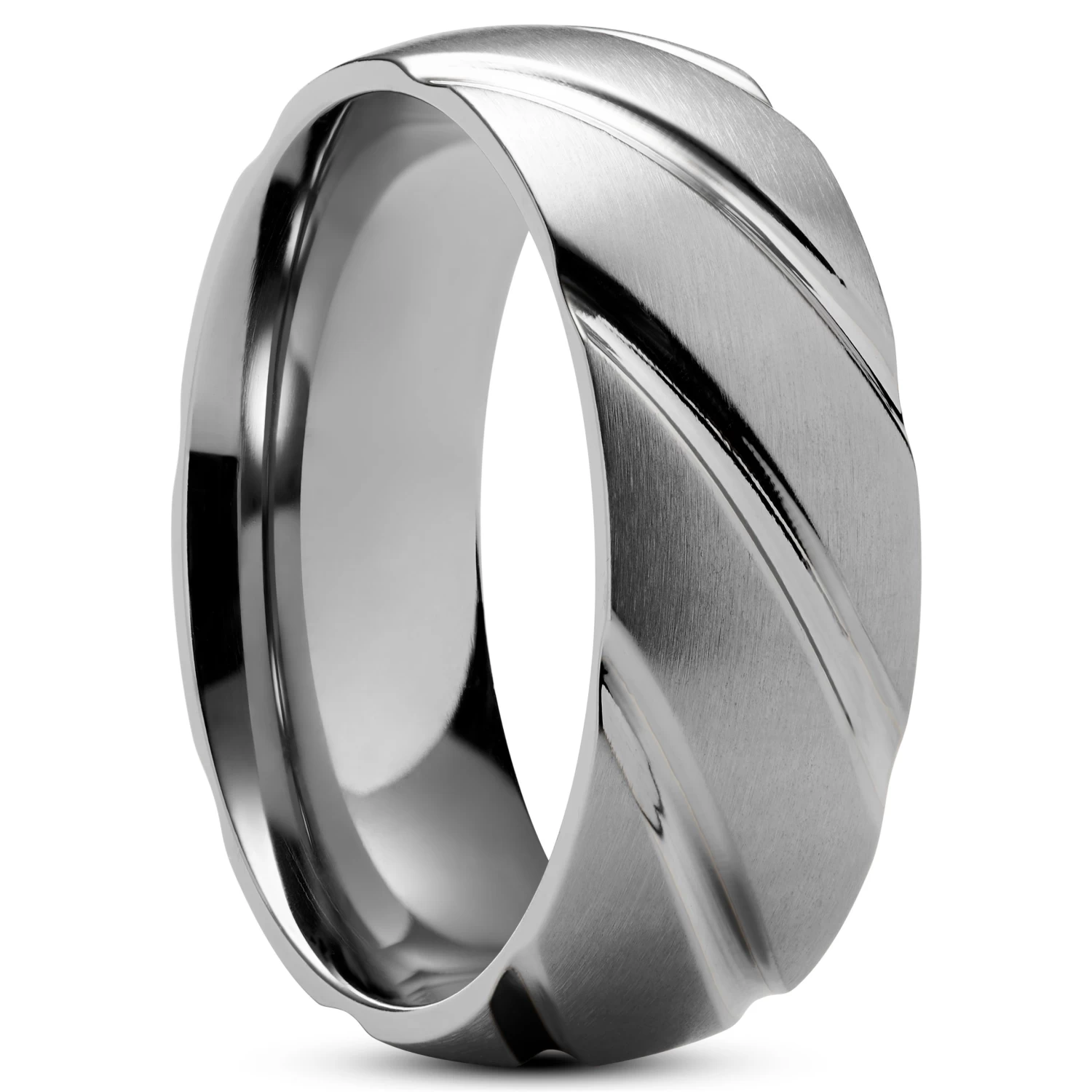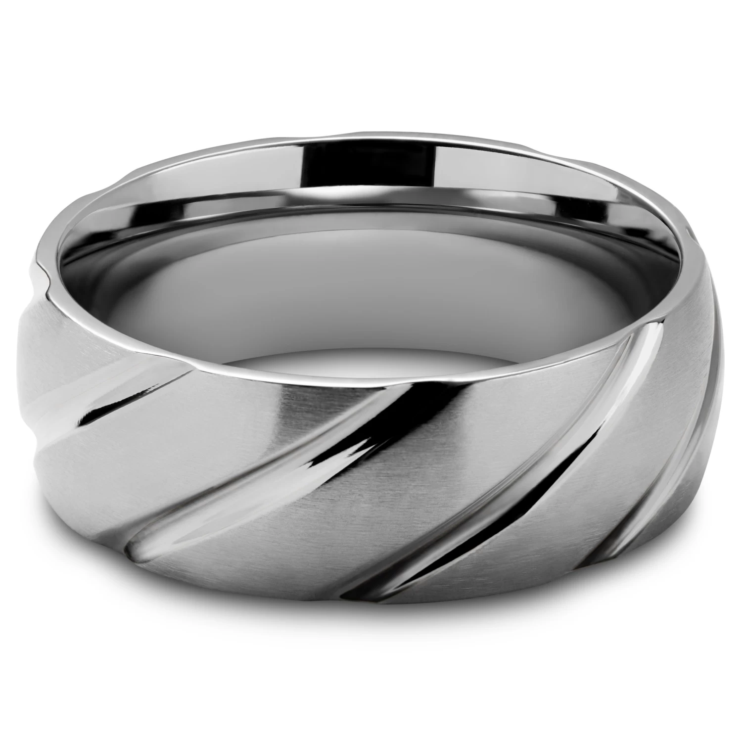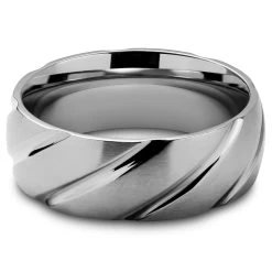 Curved on the inside for excellent all-day wearing comfort, the outside of the ring features a satin finish while the grooves are polished to a shine, adding contrast to the ring’s surface.