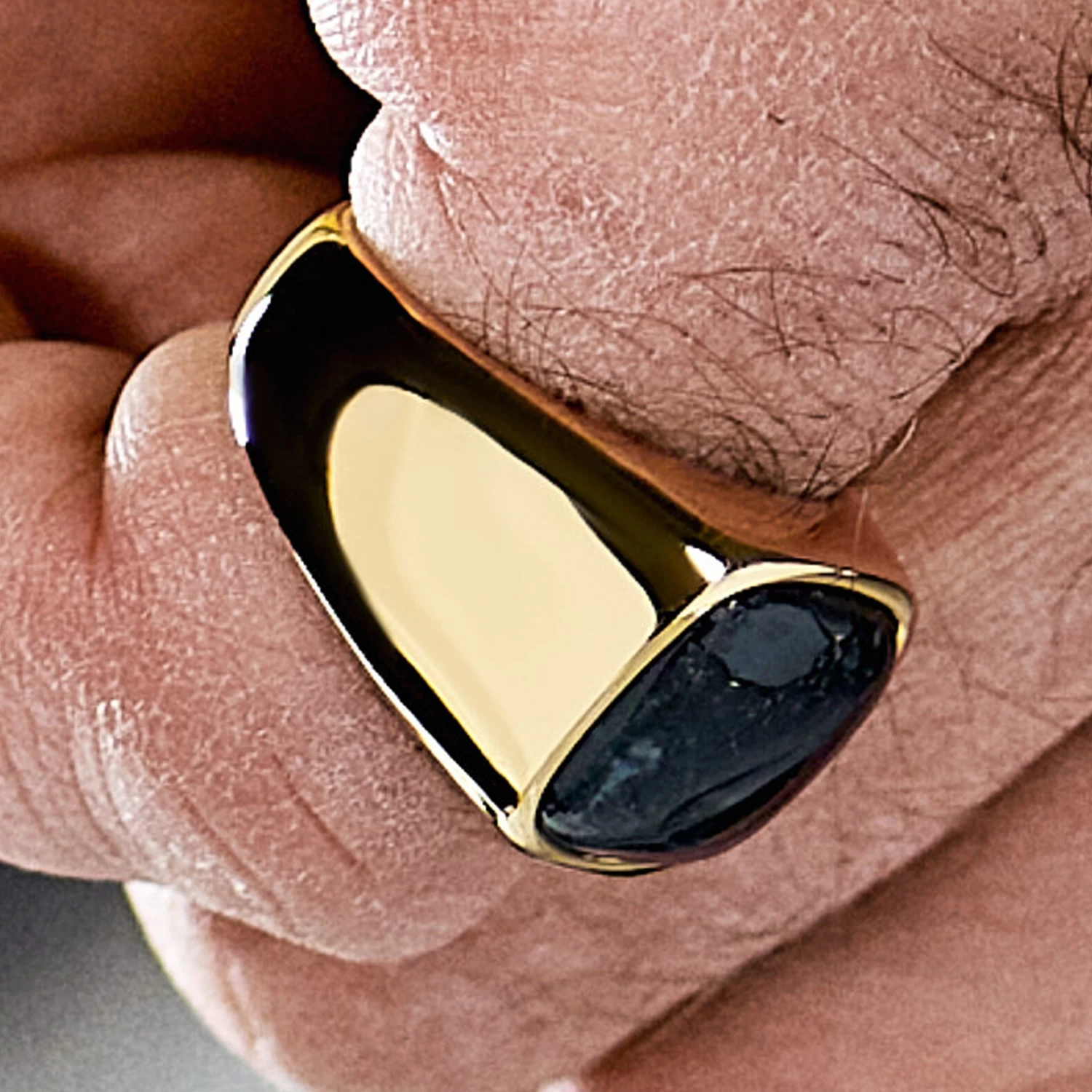 This men’s pinky ring is made of surgical-grade stainless steel PVD-coated gold tone. Titanium nitride is fused with the metal’s surface at the molecular level, resulting in a brilliant coating that’s both scratch and tarnish resistant and will neither fade nor flake.