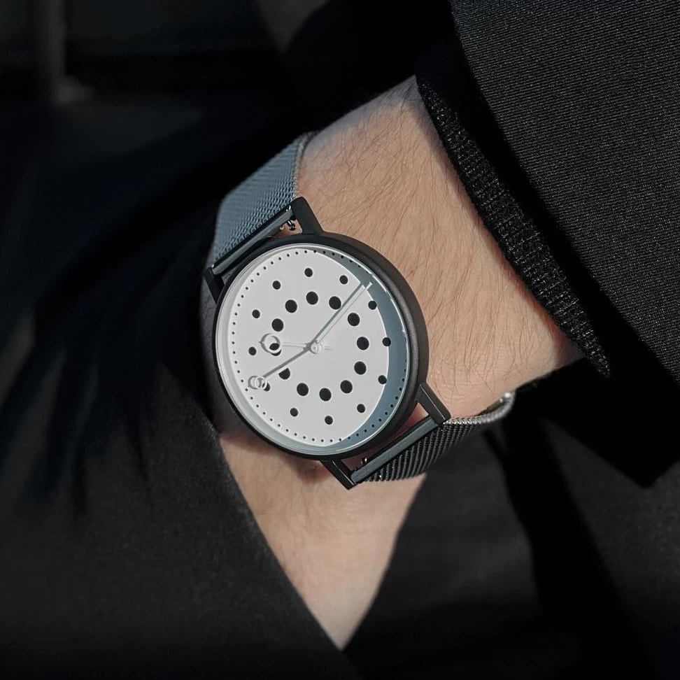 The steel mesh straps are easily interchangeable thanks to their quick-release spring bars.