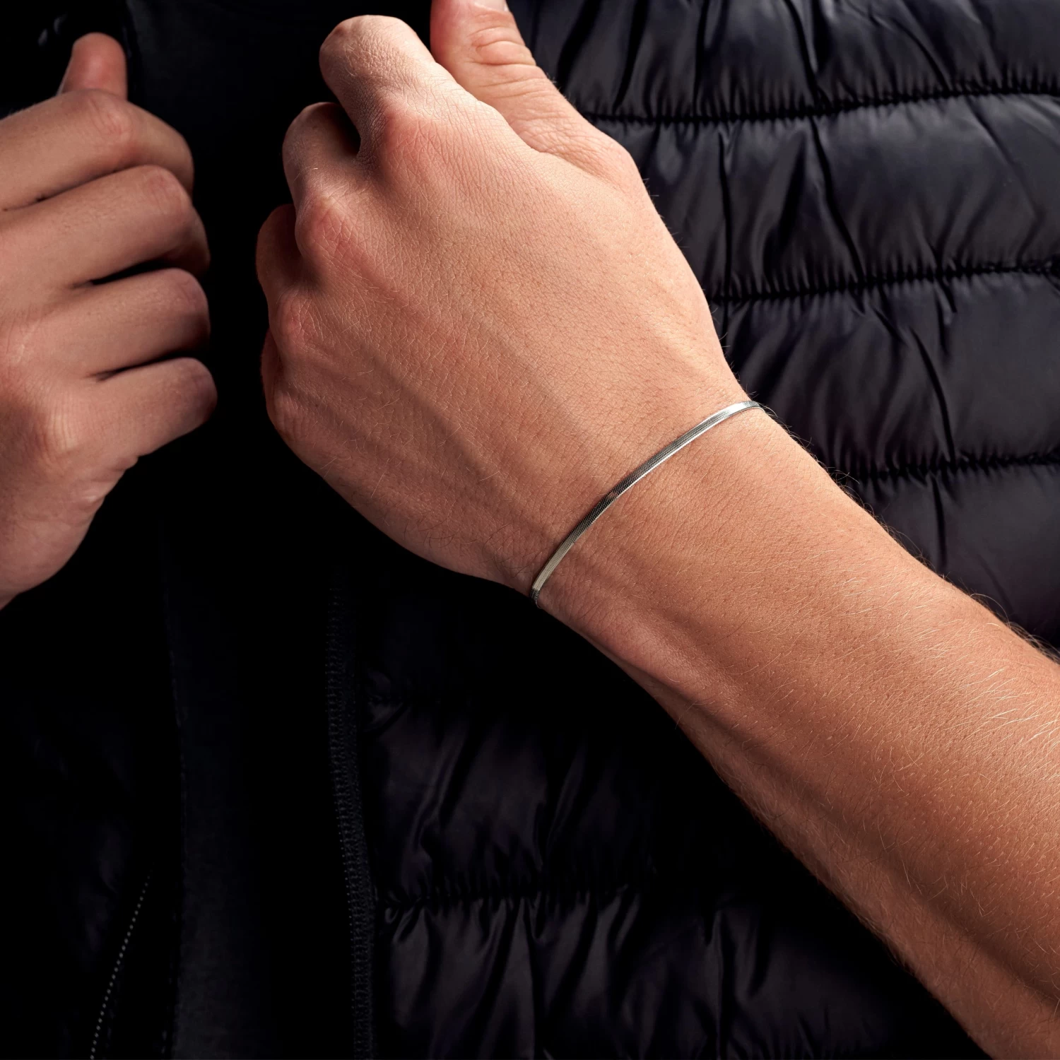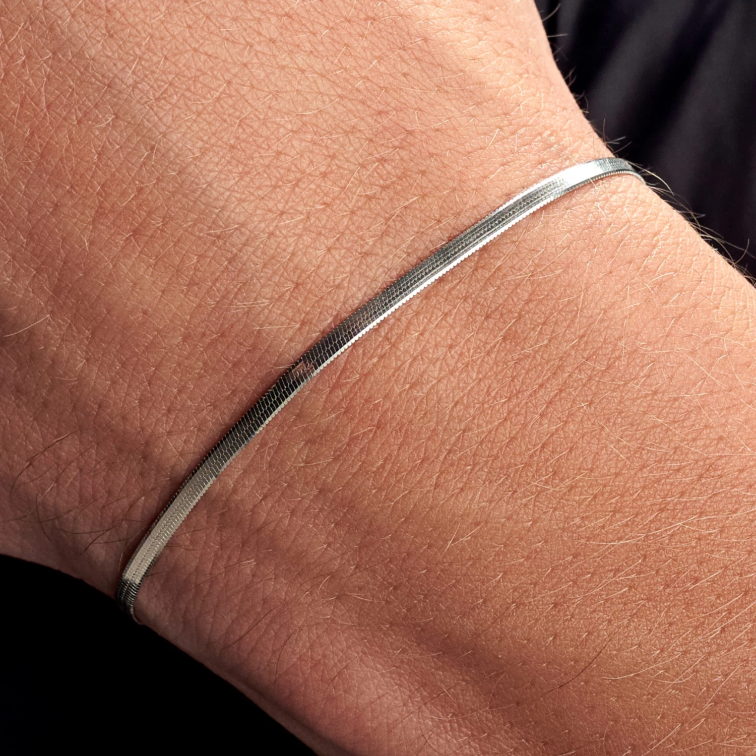 The distinctive herringbone pattern on this sterling silver bracelet for men features an elegant arrangement of interwoven flat links that effortlessly blend artistry and sophistication. The radiant rhodium finish adds an extra layer of durability and protection against tarnishing, making this exceptional bracelet a staple accessory.