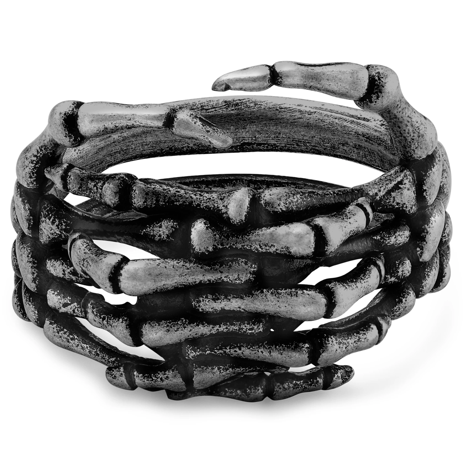 Each knuckle is rendered in sharp detail, thanks to the blackened finish. Comes in a double-band design, one thicker than the other, depicting the ulna and radius bones in your forearm.