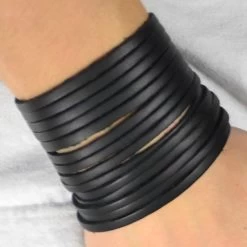 This incredible black leather stacked cuff bracelet is as cool as it gets.