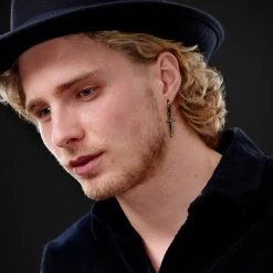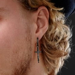 A single cross and chain dangle from this men’s hoop earring. But don’t let their simple design fool you.
