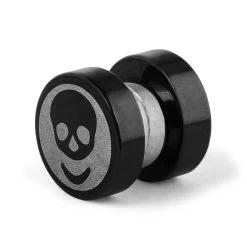 The silhouette of a jovial skull is neatly displayed on the surface of this magnetic earring for men. Made of nickel-free 316L surgical steel. Price is for one earring only.