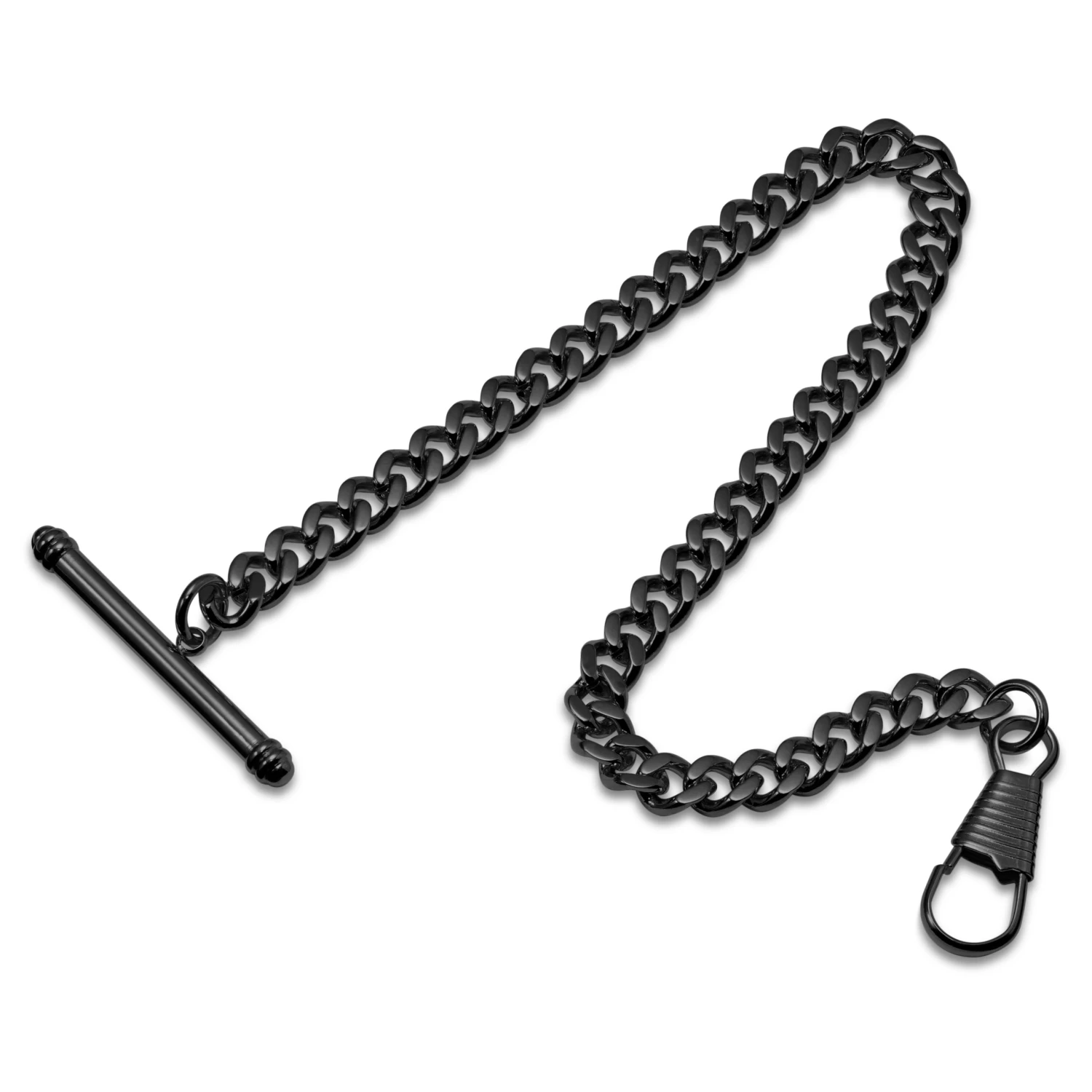 Fashioned from surgical-grade stainless steel, this black pocket watch chain quickly attaches to your favorite timepiece and gives you more ways to wear it.