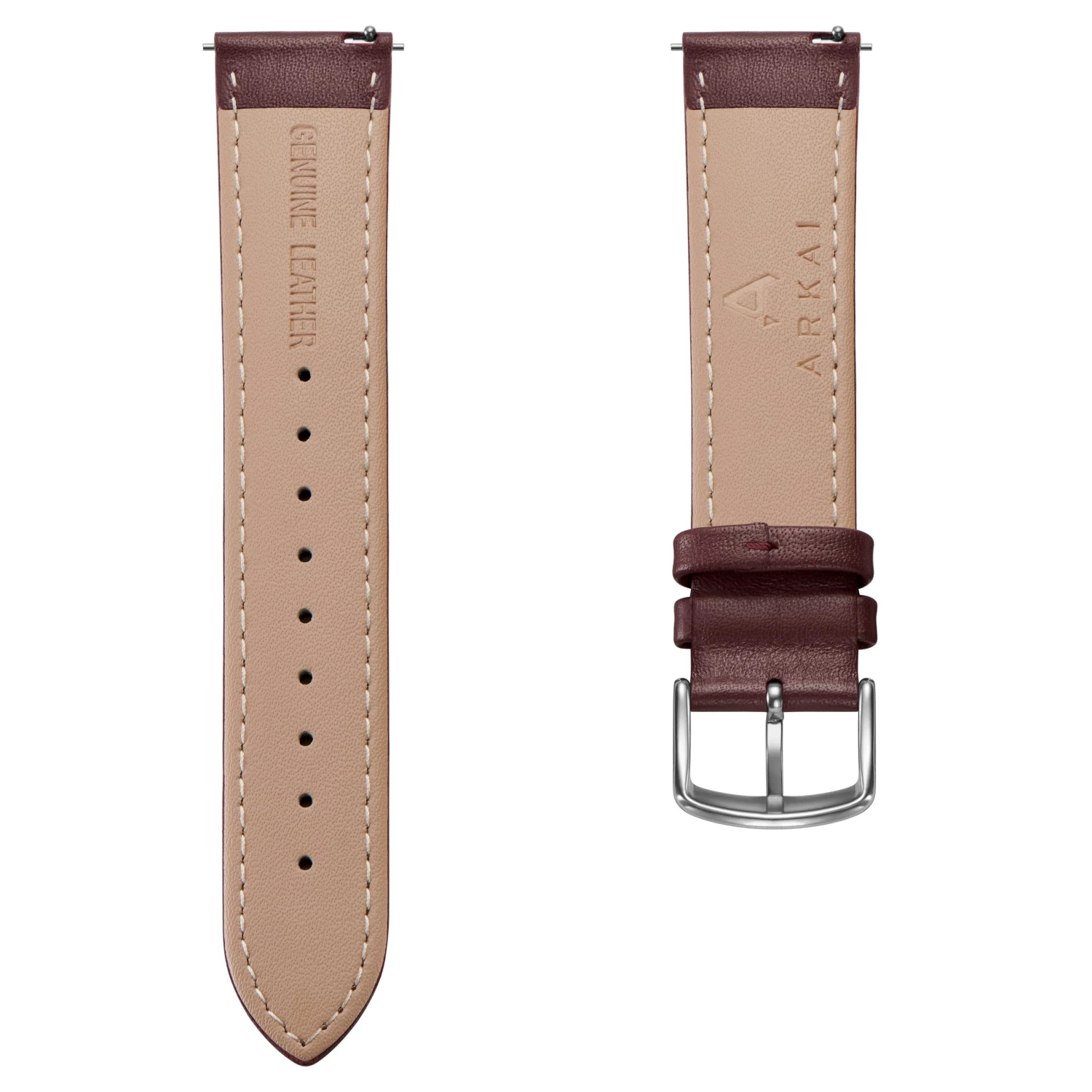 Crafted from genuine leather that’ll develop a handsome patina over time. Supple and comfortable, fastening securely to your wrist with a surgical steel pin buckle.