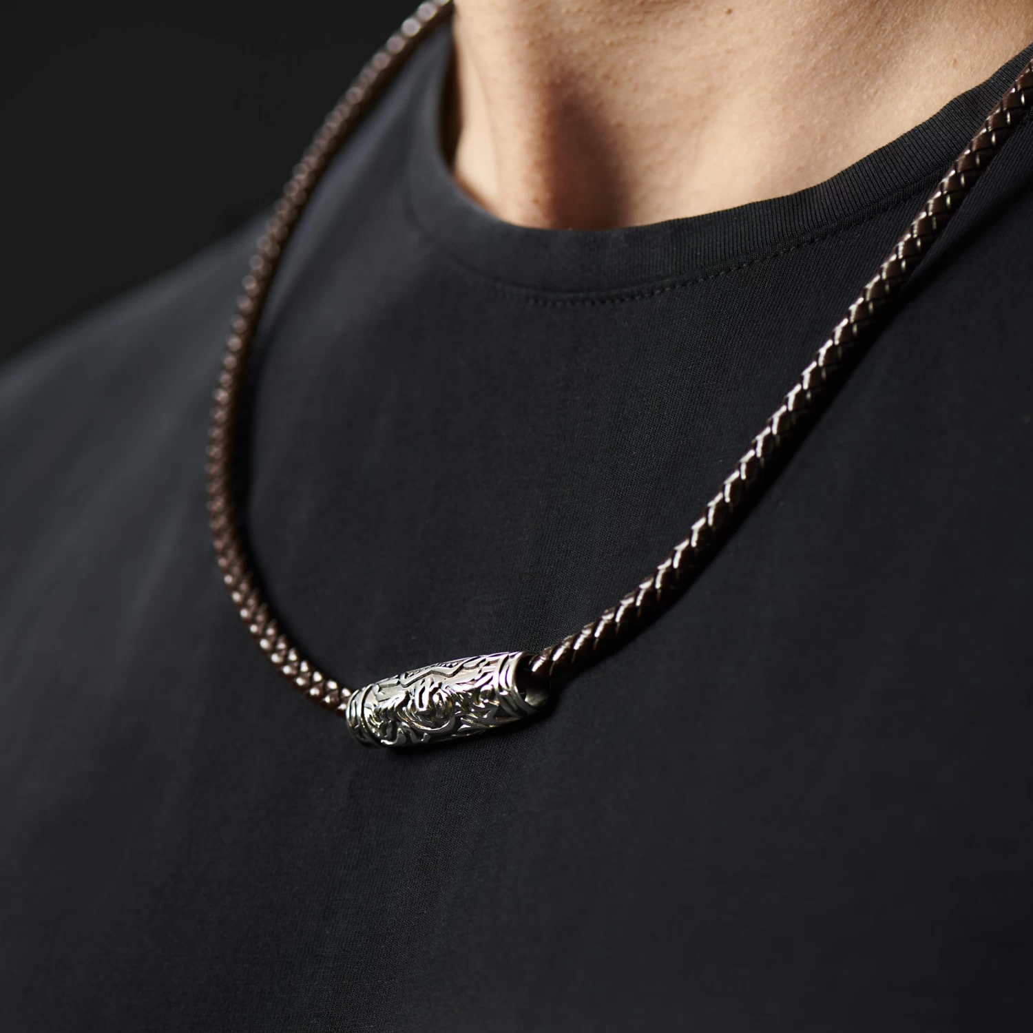 Perfect for rocking your casual jeans-and-t-shirt look. Strung on genuine braided leather.