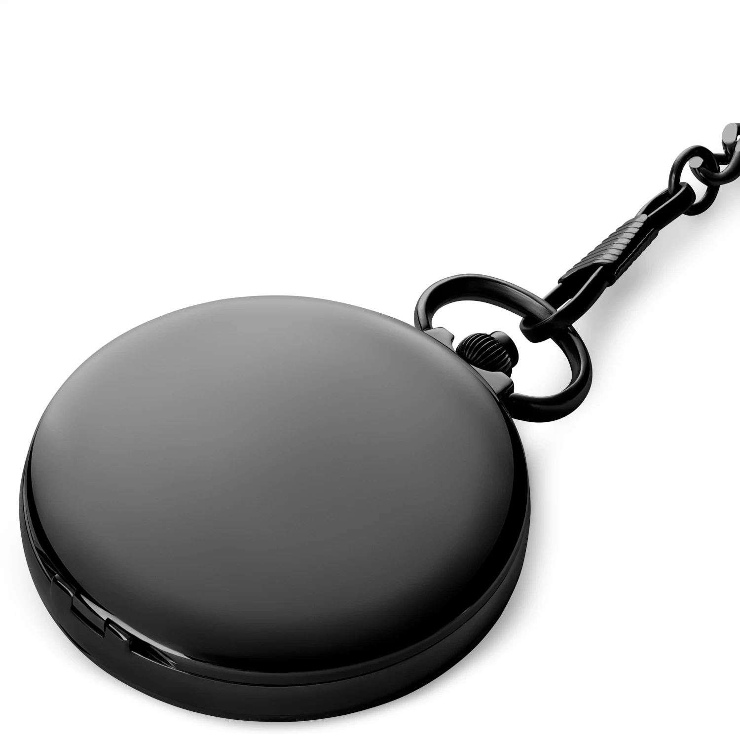 The black PVD-coated surgical-grade stainless steel case offers a minimalistic look while ensuring that your timepiece is protected from damage. The top lid opens up to a white textured dial, easily visible thanks to the hardened mineral glass crystal.