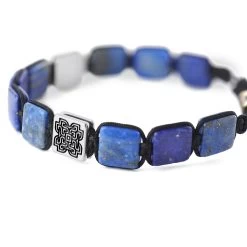 This men’s bracelet boasts gold-speckled lapis lazuli stones, their natural origins ensuring your bracelet is one of a kind. Steeped in history and folklore, lapis lazuli is believed to be a stone of protection, truth, and wisdom.