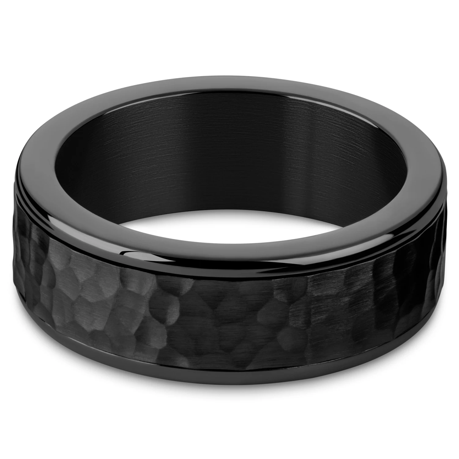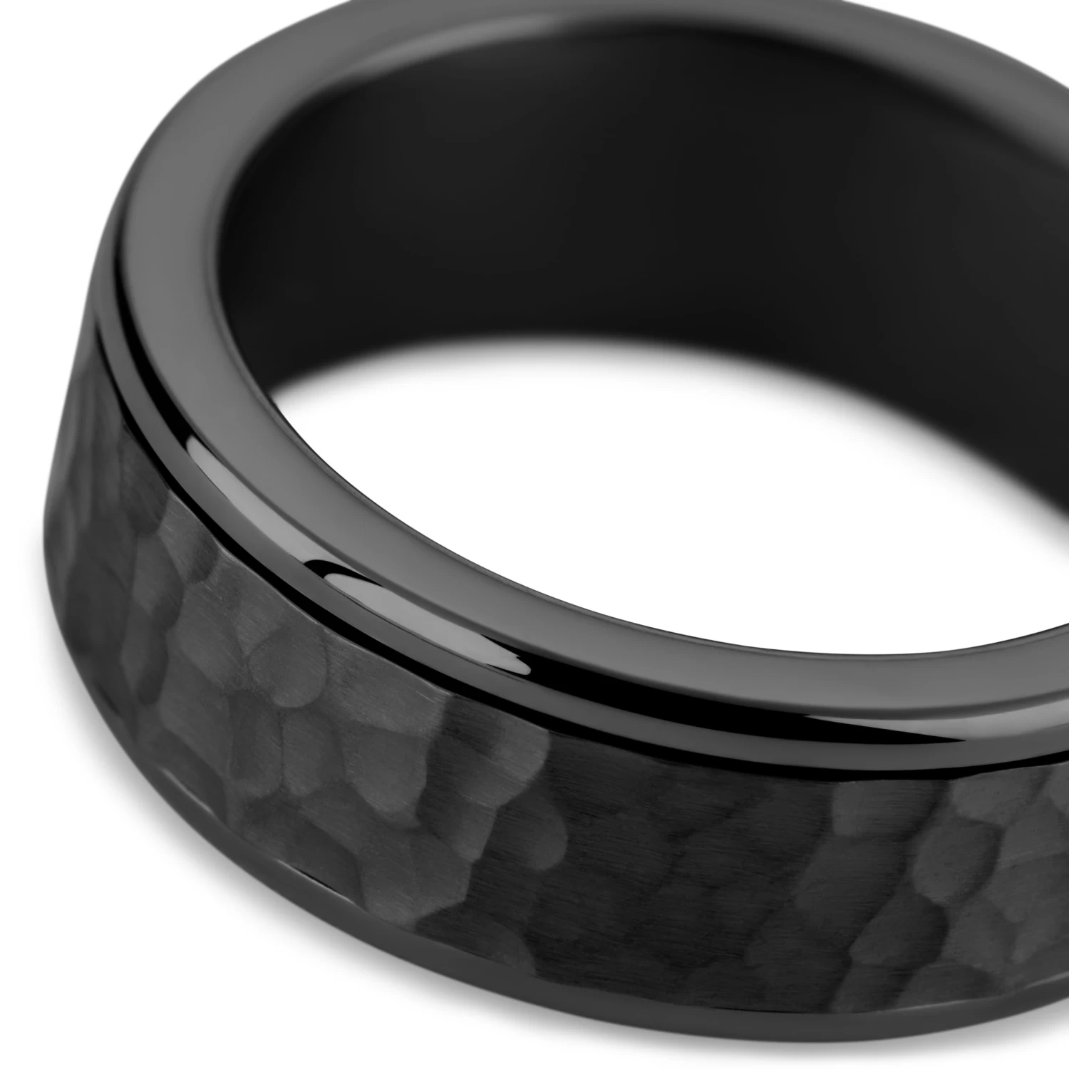 This men’s ring comes with a spinning center in a rugged hammered finish – like craters on the moon or rocks on a seashore. Idly play with the kinetic features during a long day.