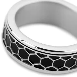 Crafted from surgical-grade stainless steel for durability and tarnish resistance. Comes with an intricate honeycomb pattern. Polished for a sleek, timeless look.