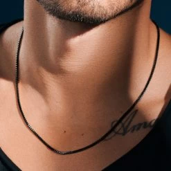 This men’s square box chain necklace is built to last, with a scratch-resistant surface and a fade-free coating that’s fused to the steel on the molecular level for maximum durability.