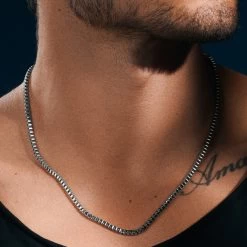Make a bold statement with this men’s square box chain necklace, crafted from high-quality surgical-grade stainless steel for long-lasting wear.