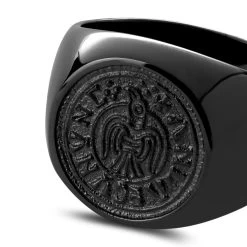 This men’s ring is made of solid surgical-grade stainless steel polished to a high shine. It’s both scratch and tarnish resistant.