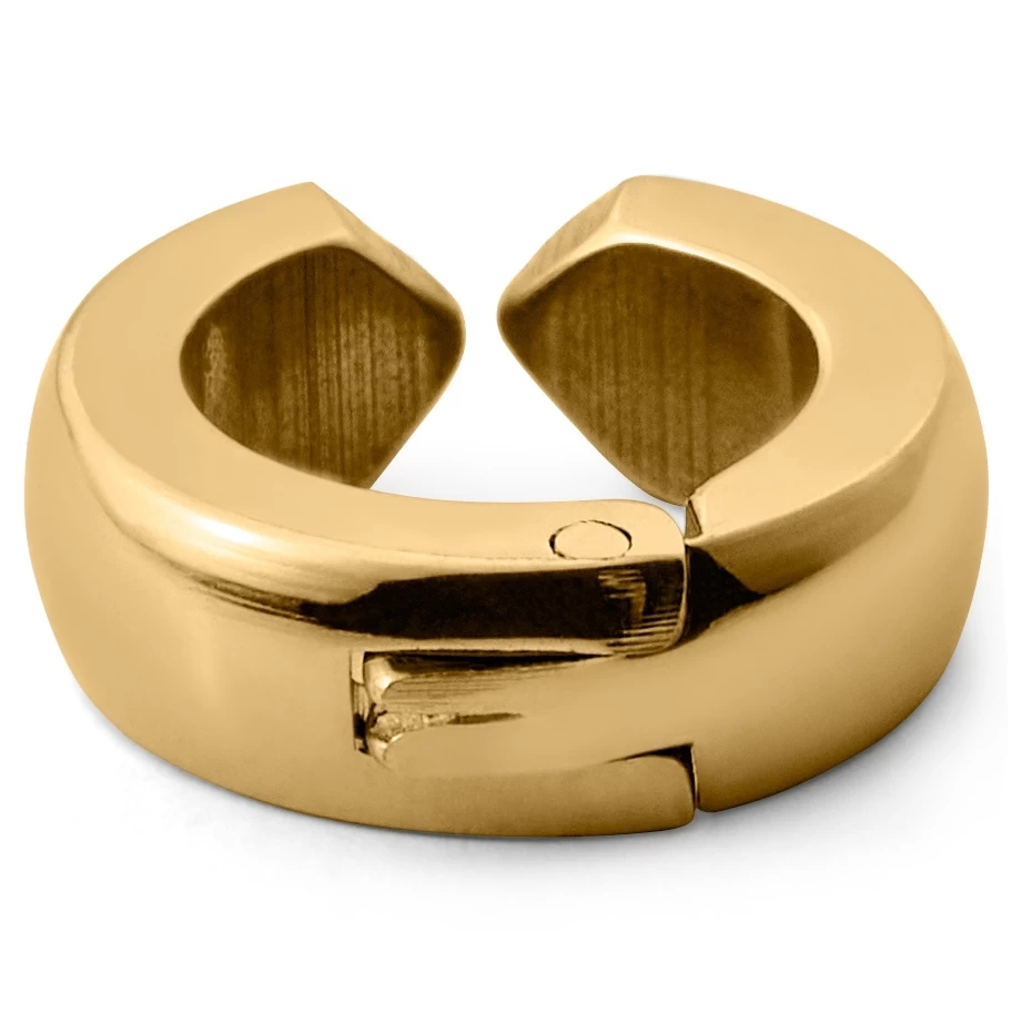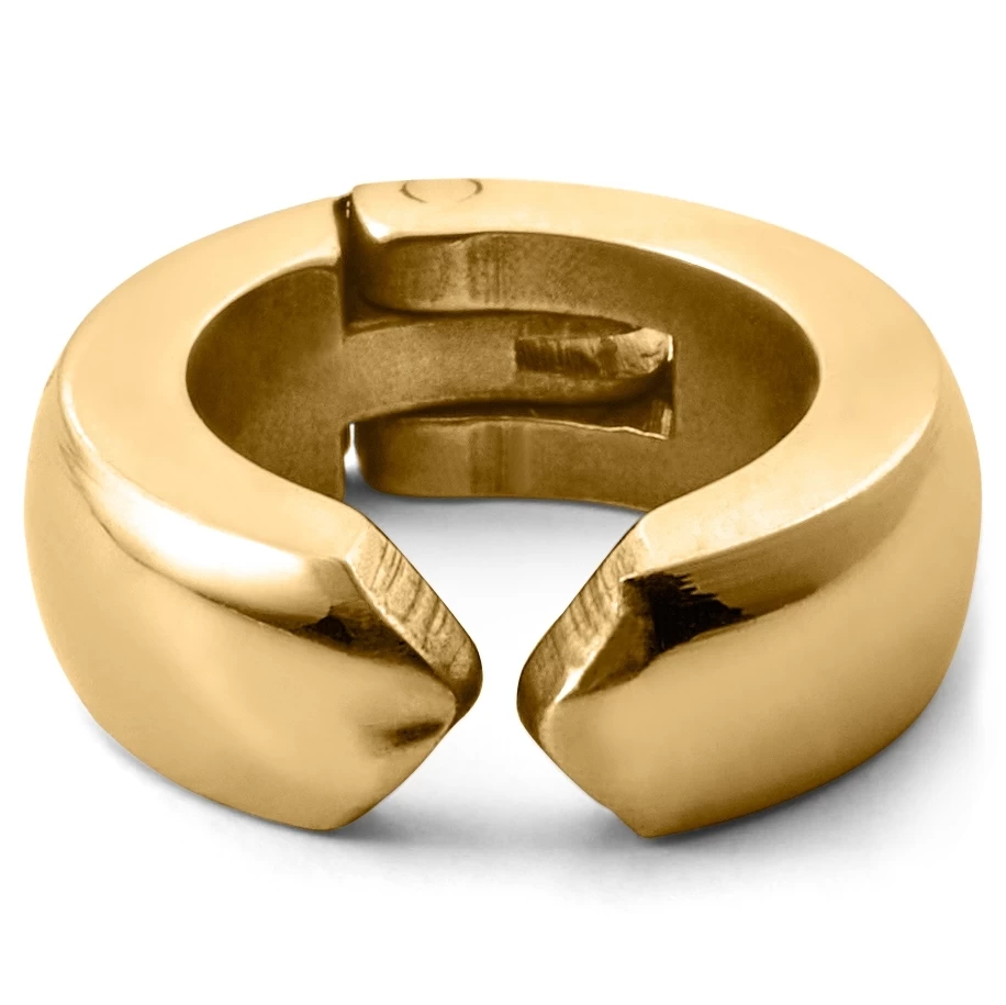 This delicate, detailed piece is made of surgical-grade stainless steel and toned gold for that elegant look. Clips onto your ear with a powerful spring that applies pressure on both sides of your ear. Not enough to hurt, but enough to keep it where it’s supposed to be.