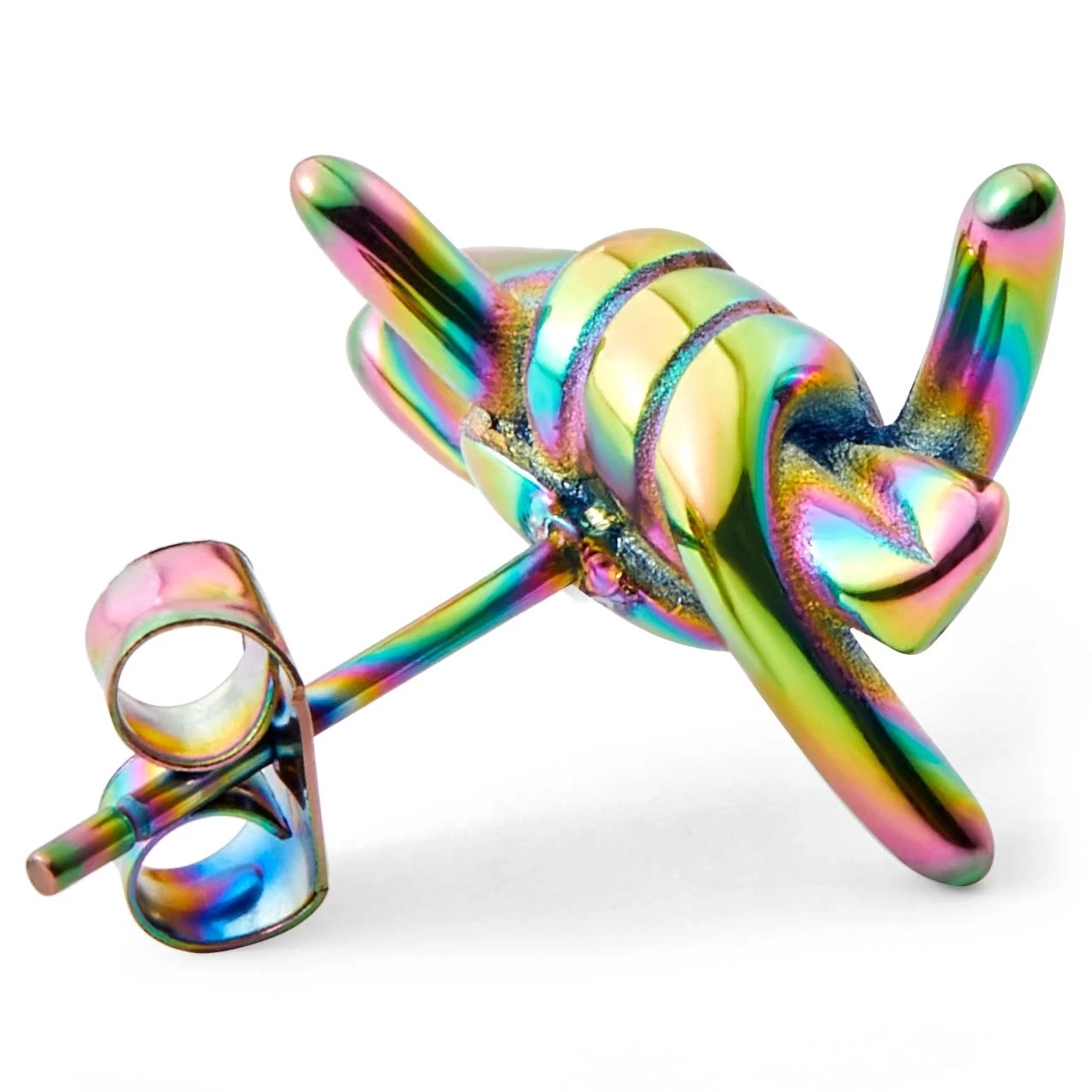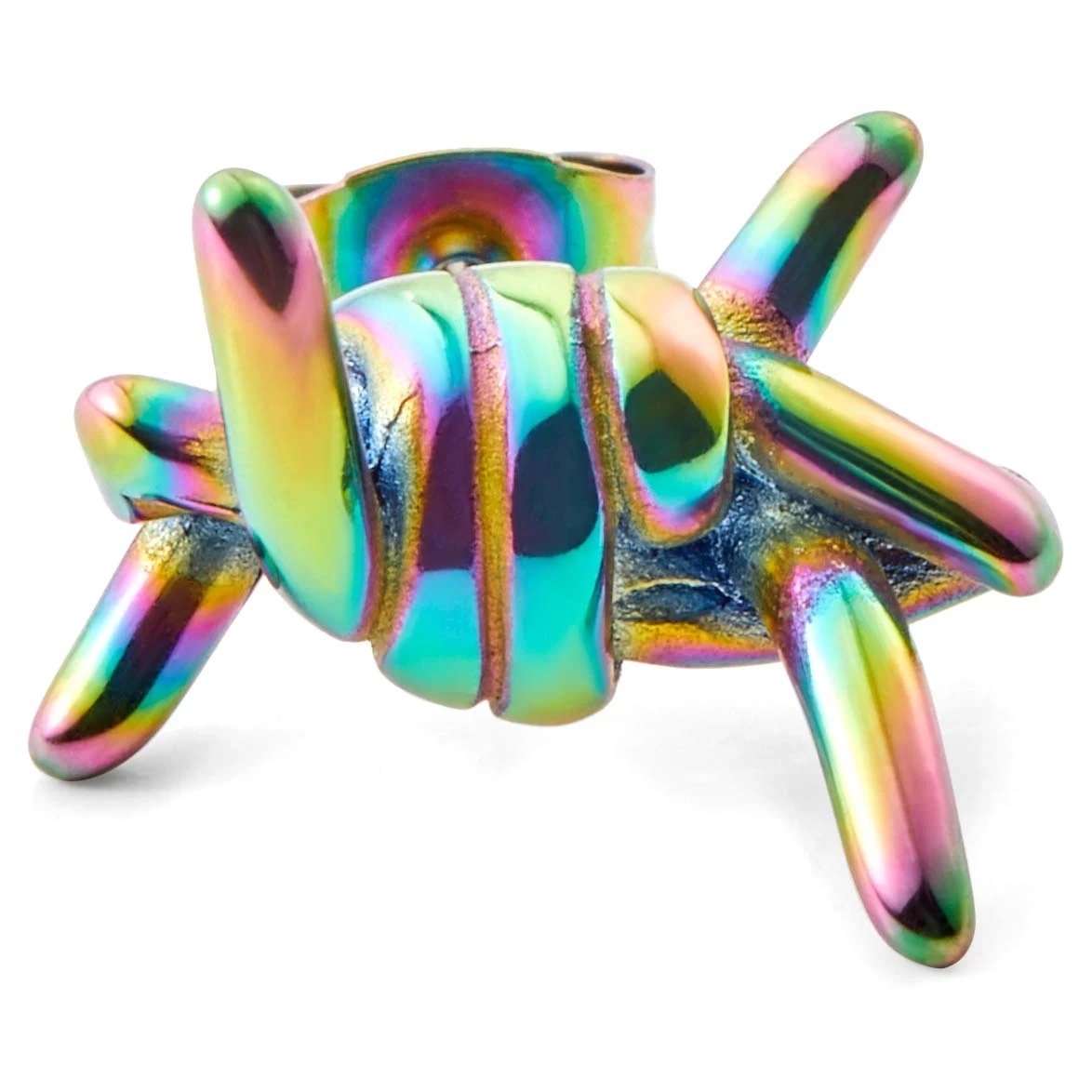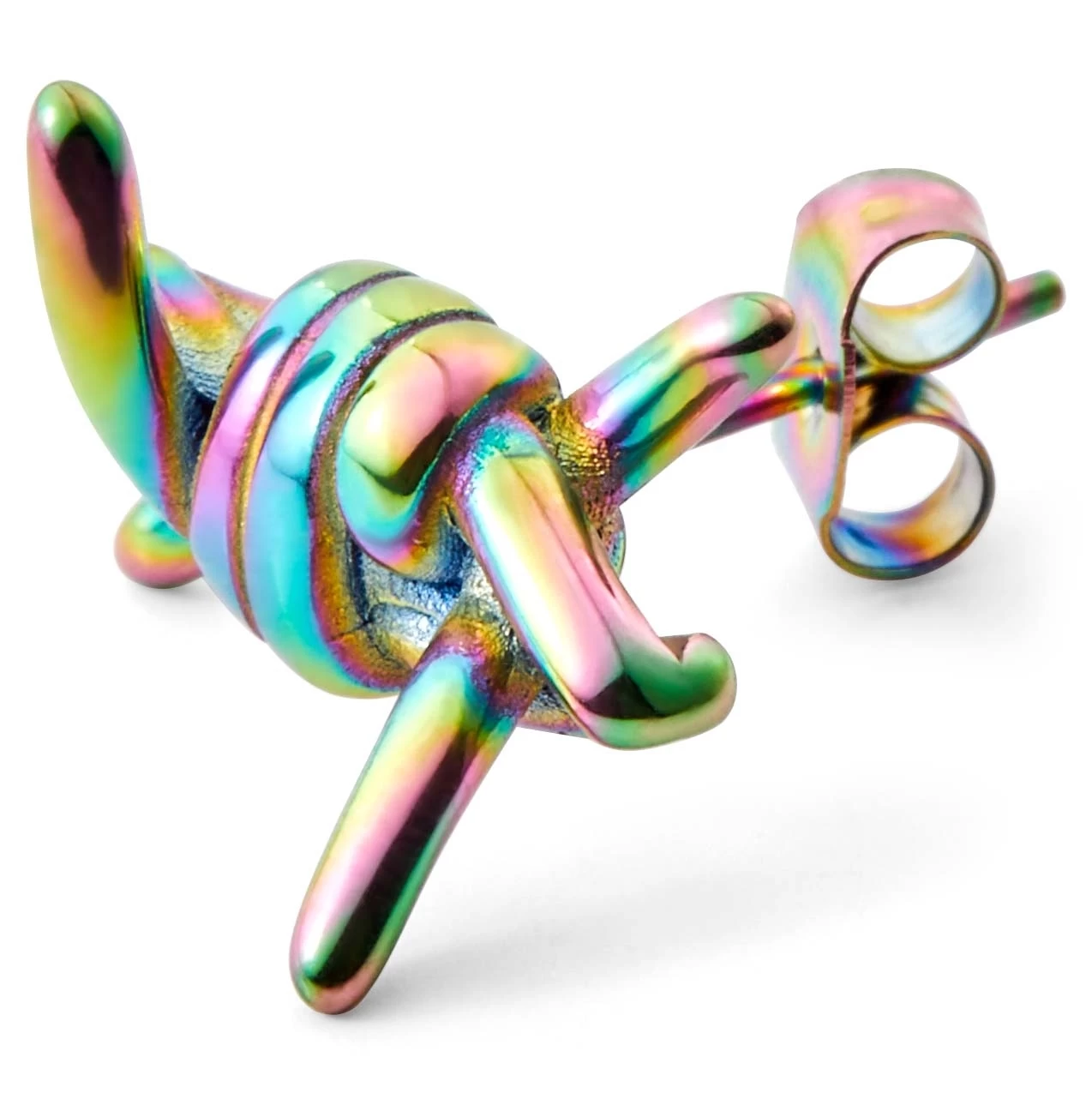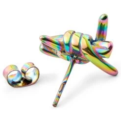 This men’s stud earring is made of surgical-grade stainless steel and closes off with a dependable push back. Its rainbow coating makes each piece unique.