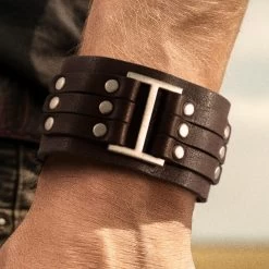There’s nothing subtle about this Gladius men’s bracelet. Show off a bold look with this wide full-grain buffalo leather design – its construction only looking and feeling better with age.