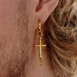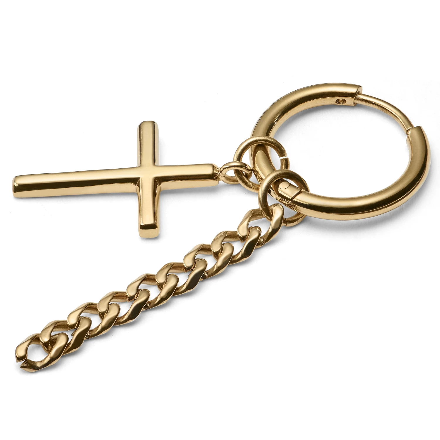 This hoop earring for men features a handsome cross pendant with a matching chain. Its simple design is ideal for both the faithful and the trend-conscious.