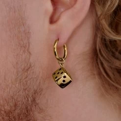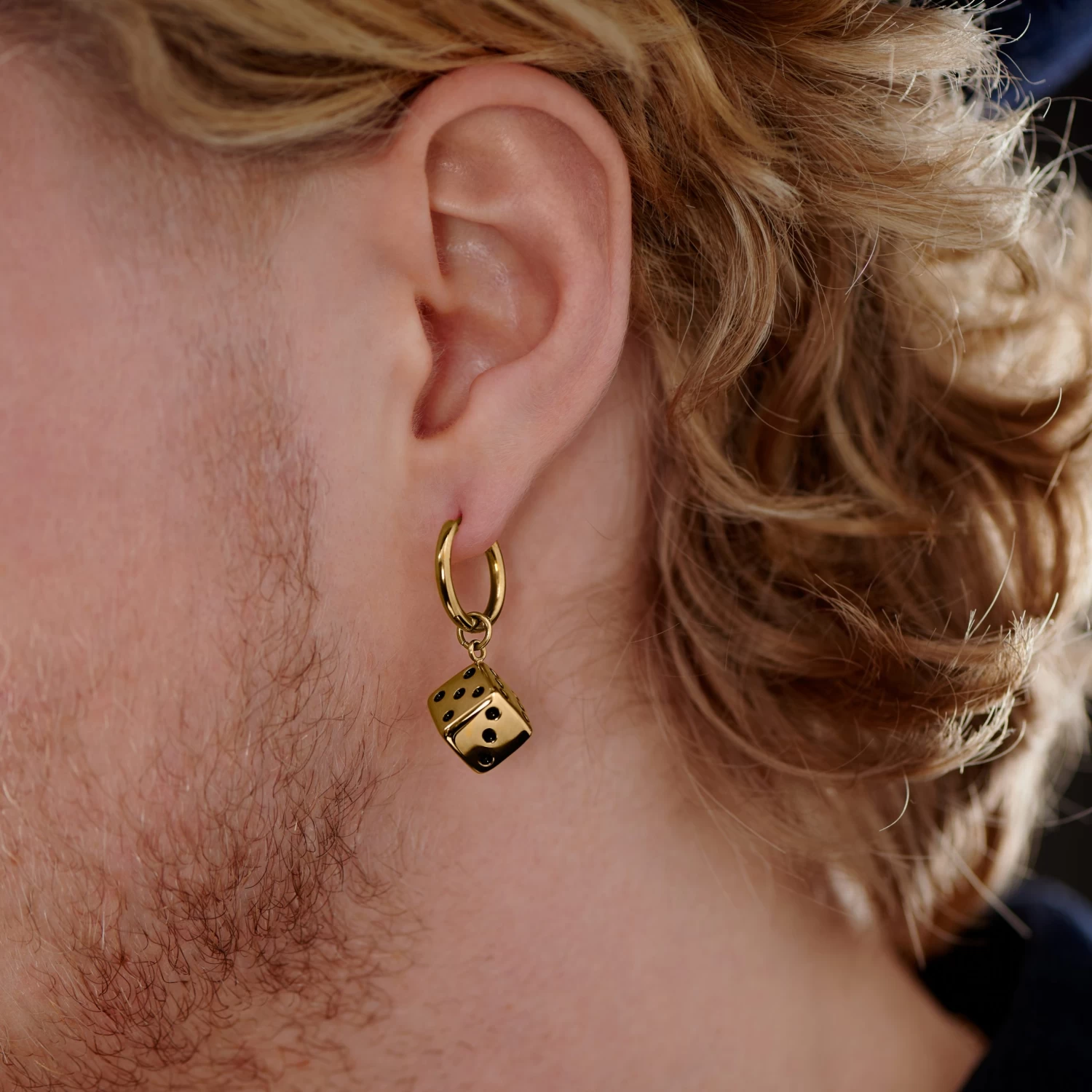 Constructed in surgical-grade stainless steel, this hoop earring with matching dice charm is ready to move your style from the slots to the high rollers’ table.