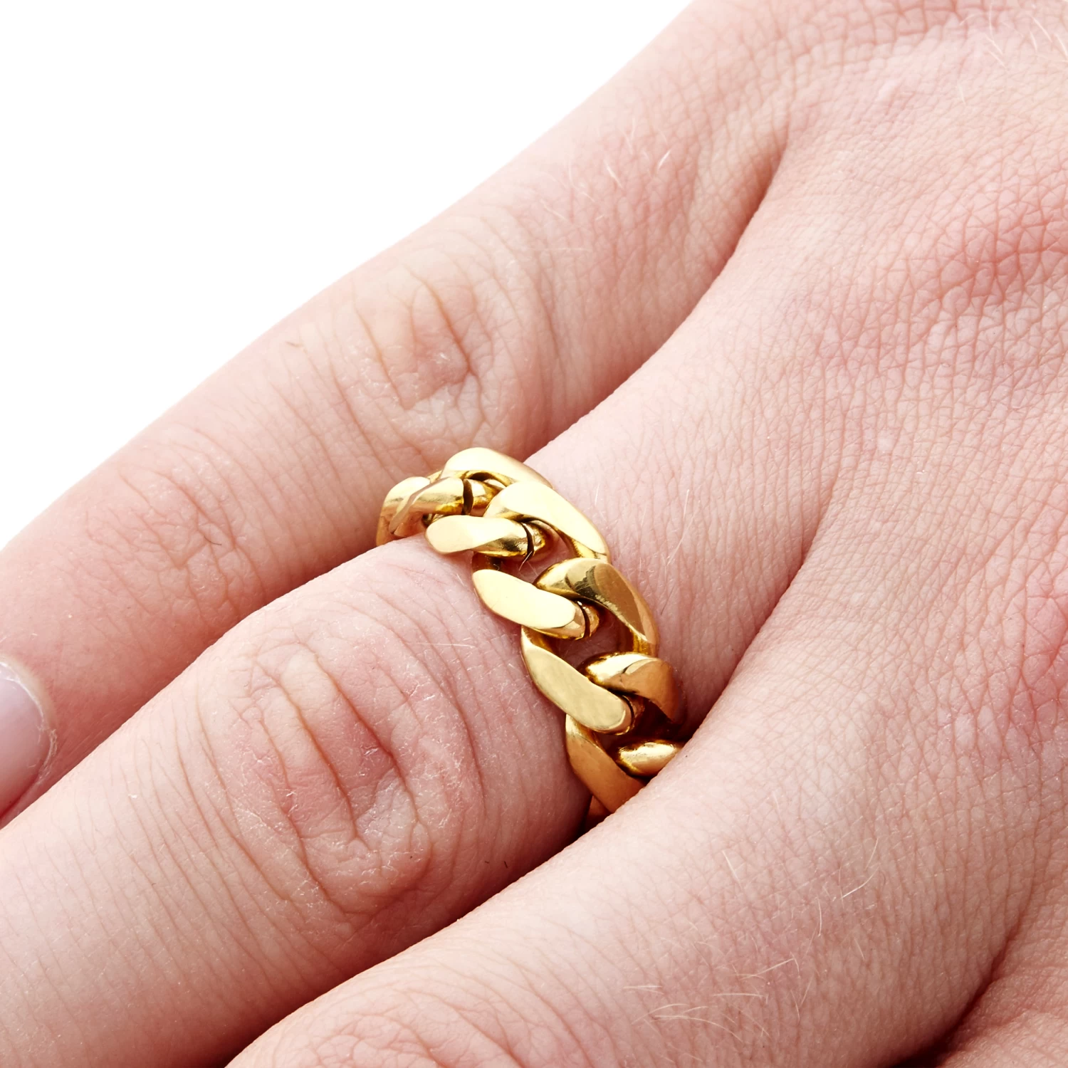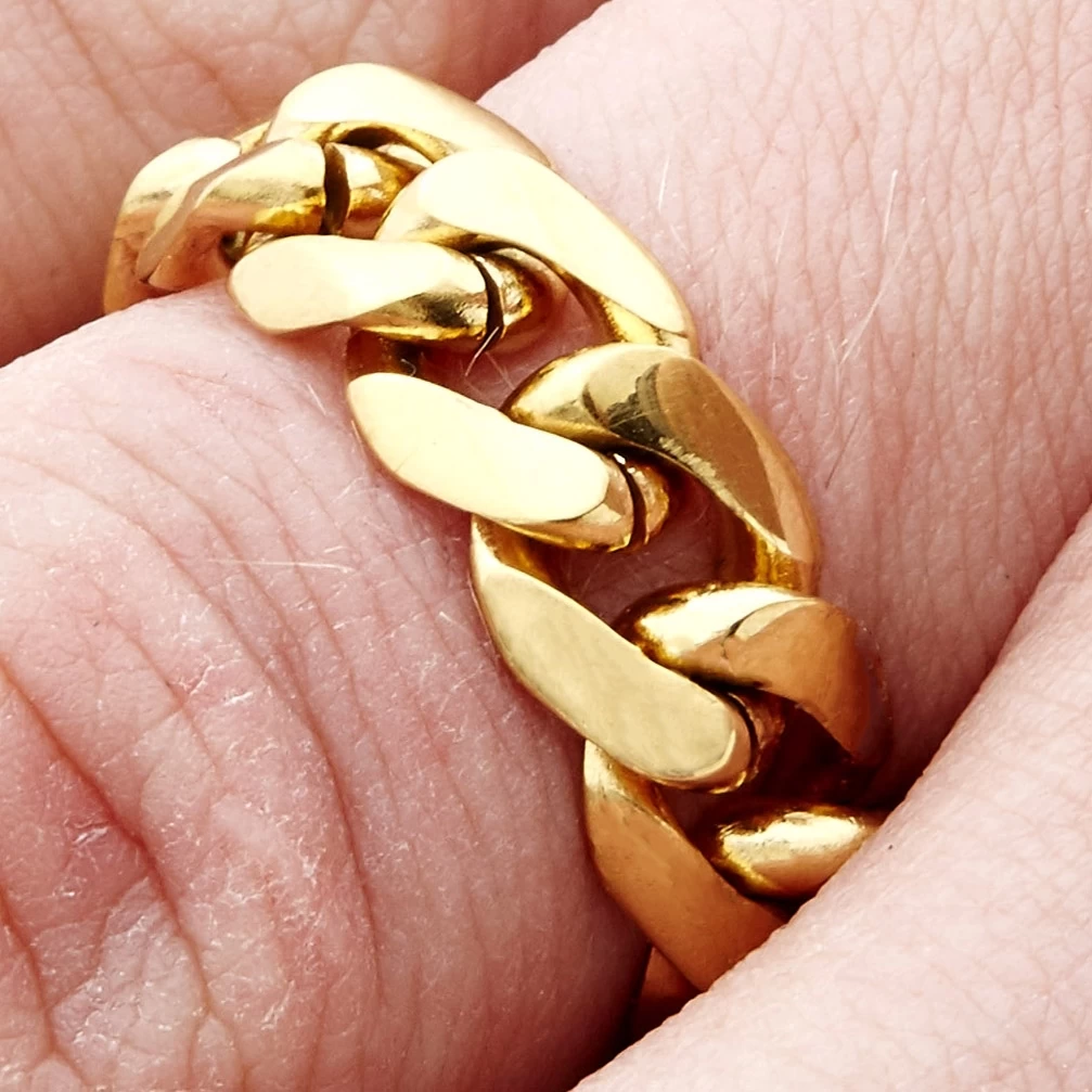 This elegant men’s ring is unlike most others. It’s been looped together in chain links to create a striking, one-of-a-kind effect.