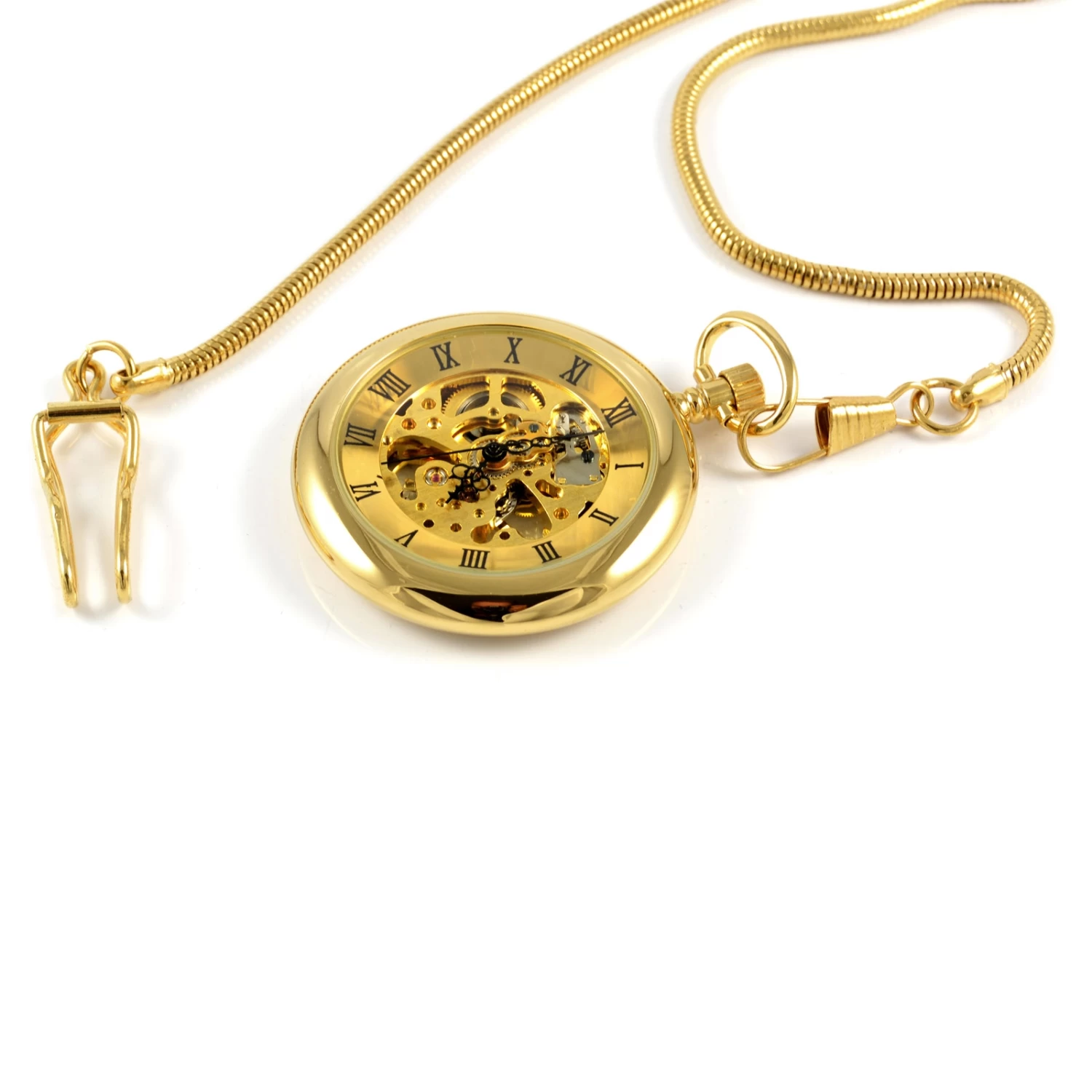 The chic gold-toned color scheme gives this item the luxurious appearance you love. Both the front and back of this timepiece are such that you can see the clockwork within. Front opens by pressing it gently.