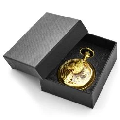 Adorned by the phoenix, finished with a finely polished gold tone, and featuring a see-through face so you can sit back and enjoy watching all those fascinating cogs and wheels whir and turn, we can’t think of anything else we’d want from a classic timepiece.