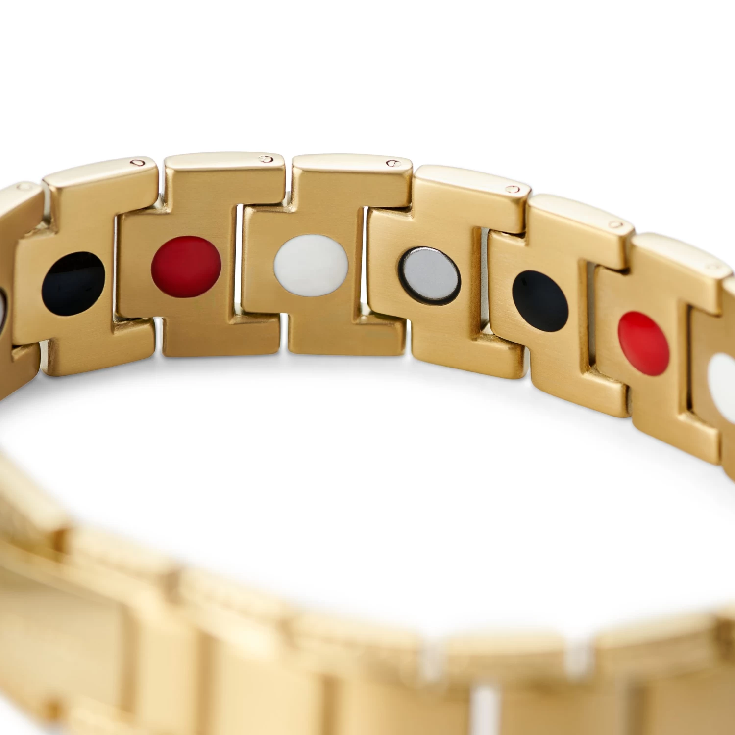 This stunning, gold-tone titanium magnetic bracelet is sure to turn heads.