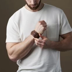 This thick leather bracelet is made of durable cowhide in a gorgeous brown tone.