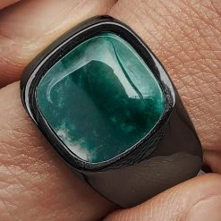 Crafted in strong stainless steel to be rust and tarnish-free, this gunmetal-colored signet ring is designed to last. With coloring and depth that looks like ink swirling in water, the unique agate stone is the star of this polished men’s ring.