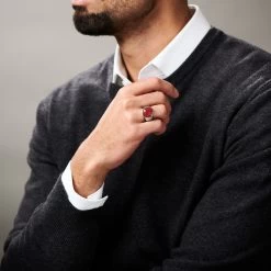 This signet ring for men encases this powerful stone within polished stainless steel that is both strong and resistant to rust.