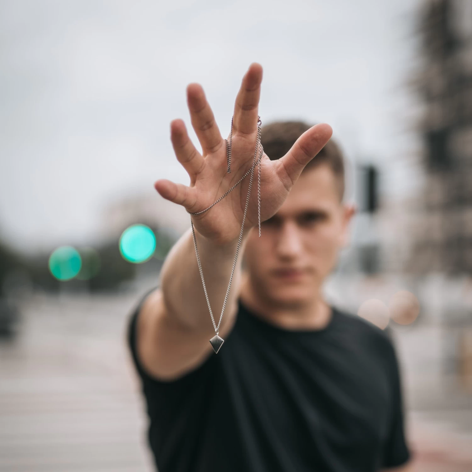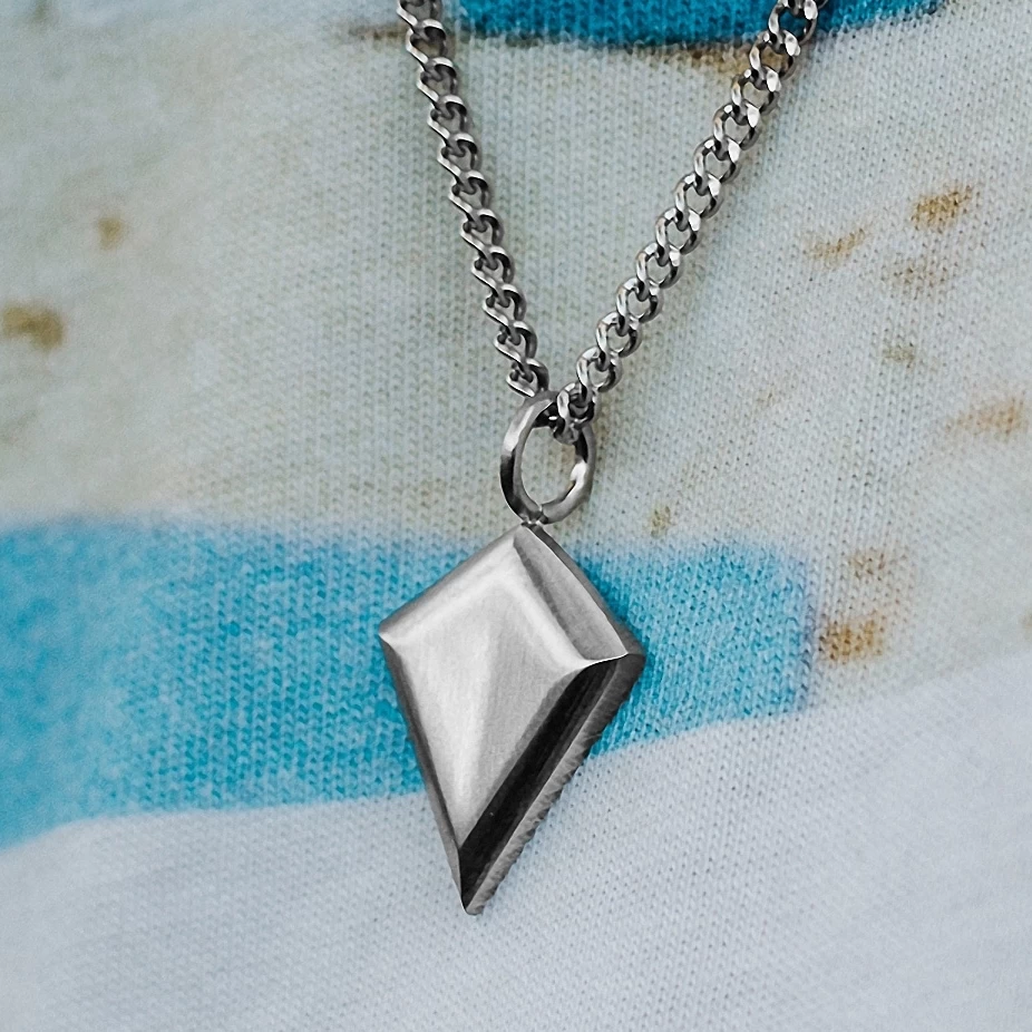 This diamond-shaped pendant exudes elegance and awesomeness. The pointed corners, sloping edges, glass-like polish on the silver tone finish…