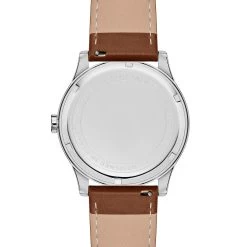 Surgical-grade stainless steel ensures durability. Fasten with brown genuine leather straps that’ll develop a distinct patina over time. Tool-free quick-release spring bars let you swap them out with only your fingers.