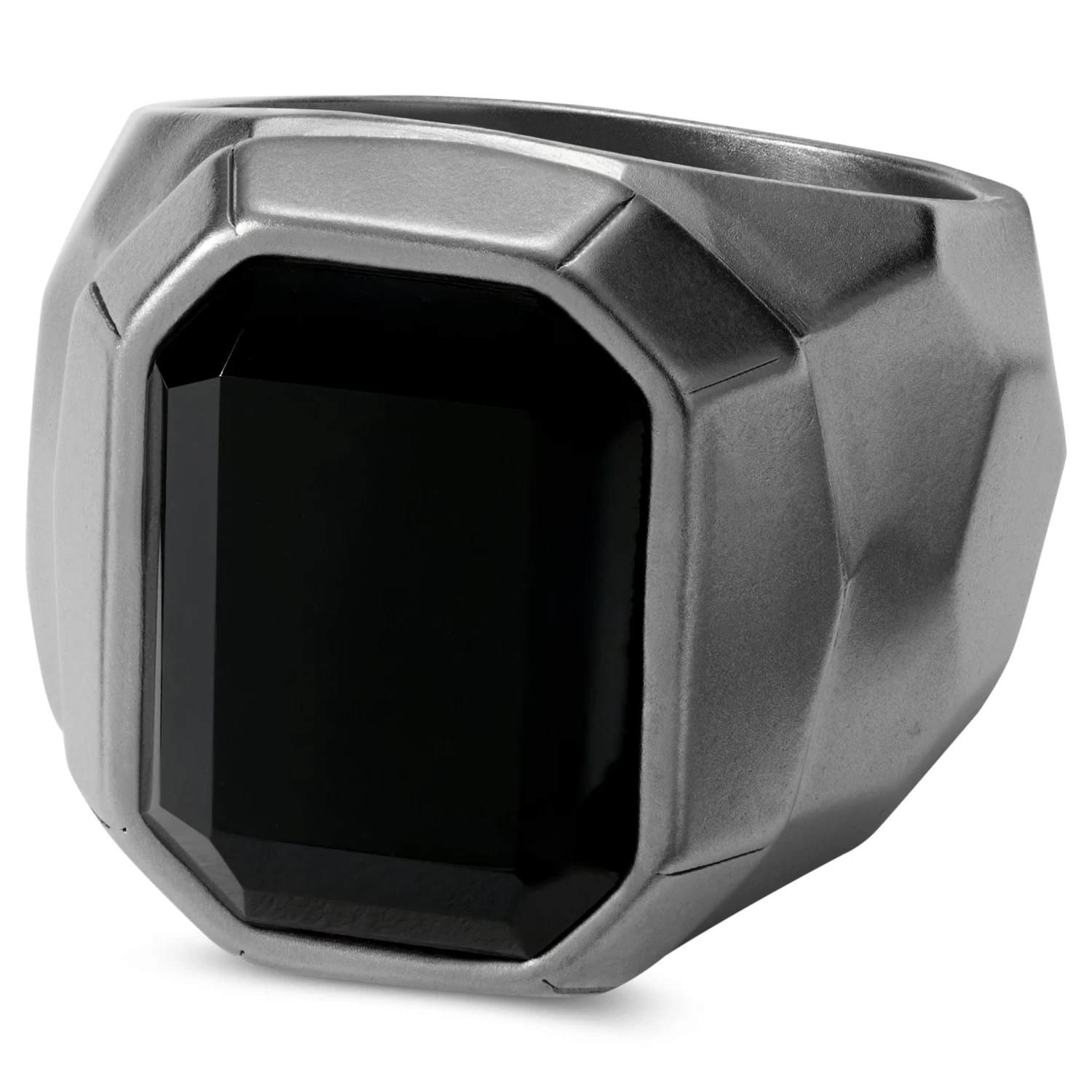 Constructed in hard-wearing, rust-resistant stainless steel, this men’s signet ring features a large black agate stone and carved facets on the sides. With a smooth interior, this Danish design will be comfortable to wear all day.