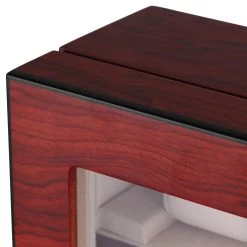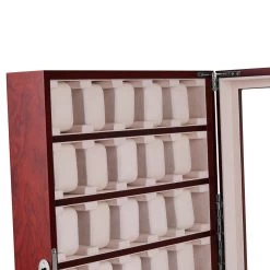 Keep your watch collection safe and in one place with this gorgeous bubinga wood finish cabinet. Holds up to 30 pieces on individual soft velvet pillows. Easy viewing through the large glass front.